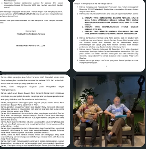 Sebelumnya, pada 29 Desember 2019, pihaknya telah mengikat hubungan hukum dengan Reny melalui kesepakatan penawaran jasa hukum yang sah. Mereka tidak hanya mendampingi klien ke ruang publik dan media massa untuk memperjuangkan pengakuan status istri siri serta hak anak terhadap Andar Amin Harahap, tetapi juga mengajukan gugatan ke Pengadilan Negeri Padangsidimpuan tanpa pamrih. Dalam perjanjian itu telah jelas disepakati, Reny wajib memberikan success fee sebesar 30 persen dari setiap manfaat atau hak yang diperoleh dari Andar.