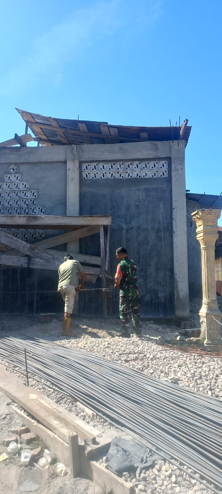 Kegiatan ini menjadi wujud nyata kemanunggalan TNI dengan rakyat, di mana Babinsa tidak hanya hadir sebagai aparat kewilayahan, tetapi juga terlibat langsung membantu masyarakat dalam pembangunan sarana ibadah. Sejak pagi hari, Serka Supriyadi tampak bahu-membahu bersama warga mengangkut material dan mengerjakan bagian-bagian konstruksi masjid dengan penuh semangat kebersamaan.