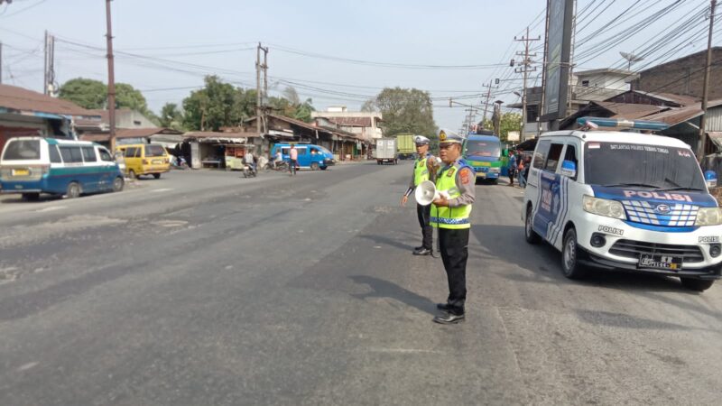Pada kesempatan itu petugas memberikan himbauan dan penyuluhan kepada masyarakat dan sopir angkutan umum untuk tertib berlalu lintas dan selalu berhati hati serta selalu mematuhi peraturan lalu lintas di jalan raya.
