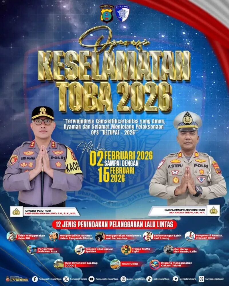 Dalam rangka meningkatkan kesadaran dan kepatuhan masyarakat terhadap peraturan lalu lintas, Polres Tanah Karo melaksanakan Operasi Keselamatan Toba 2026.