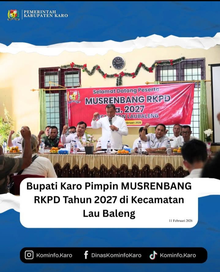 Bupati Karo, Brigjen Pol (Purn) Dr. dr. Antonius Ginting, Sp.OG., M.Kes., menghadiri sekaligus memimpin secara langsung Musyawarah Perencanaan Pembangunan (Musrenbang) Rencana Kerja Pemerintah Daerah (RKPD) Tahun 2027 tingkat Kecamatan yang dilaksanakan di Lau Baleng, Rabu (11/02/2026).