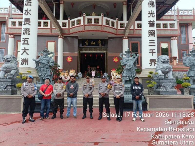 Dalam rangka memastikan situasi keamanan dan ketertiban masyarakat tetap terjaga selama perayaan Tahun Baru Imlek 2026, Polsek Berastagi melaksanakan kegiatan pengamanan dan monitoring ibadah di sejumlah vihara yang berada di wilayah hukumnya, Selasa (17/2/2026) mulai pukul 08.00 WIB hingga selesai.