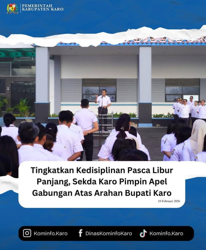 Menindaklanjuti arahan strategis dari Bupati Karo, Brigjen Pol (Purn) Dr. dr. Antonius Ginting, Sp.OG., M.Kes., Pemerintah Kabupaten Karo menggelar Apel Gabungan Aparatur Sipil Negara (ASN) di halaman Kantor Bupati Karo pada Rabu (18/2/2026).