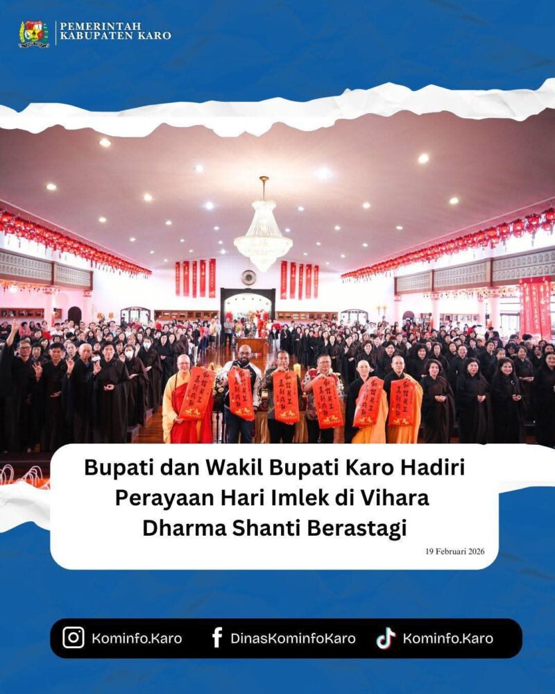 Bupati Karo, Brigjen Pol (Purn) Dr. dr. Antonius Ginting, Sp.OG., M.Kes., dan Wakil Bupati Karo, Komando Tarigan, S.P., menghadiri perayaan hari Imlek di Vihara Dharma Shanti Berastagi. Kamis, (19/02/2026).