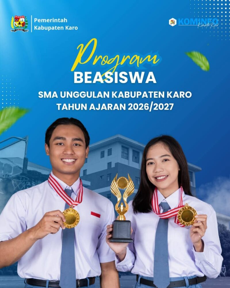 Pemerintah Kabupaten Karo membuka Program Beasiswa SMA Unggulan Tahun Ajaran 2026/2027 bagi lulusan SMP/MTs yang ingin melanjutkan pendidikan di sekolah terbaik.