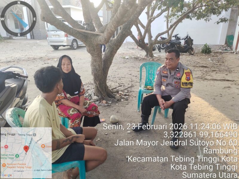 Dalam rangka menjaga dan memelihara situasi keamanan dan ketertiban masyarakat (kamtibmas) agar tetap kondusif, Polres Tebingtinggi melalui Bhabinkamtibmas Polsek Padanghilir Aipda Mhd. Hartono melaksanakan kegiatan sambang dan mengimbau warga binaannya. Kegiatan tersebut dilaksanakan pada hari Senin (23/2/2026), bertempat di Jalan Sutoyo Lk III Kelurahan Rambung, Kecamatan Tebingtinggi Kota, Kota Tebingtinggi – Sumut.