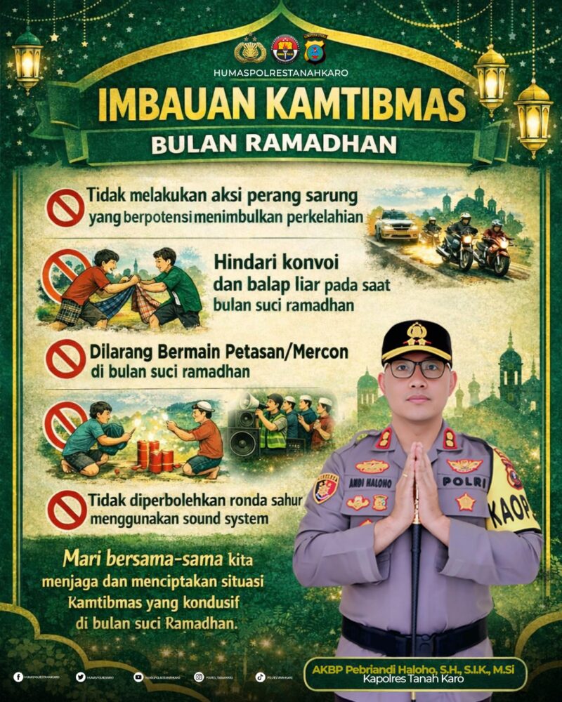 – Dalam rangka menjaga situasi keamanan dan keterti ban masyarakat (Kamtibmas) selama bulan suci Ramadan, Polres Tanah Karo melalui jajaran Humas mengeluarkan sejumlah imbauan kepada masyarakat.