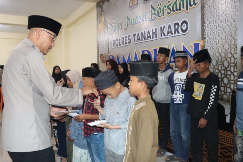 Dalam kesempatan tersebut, Kapolres Tanah Karo AKBP Pebriandi Haloho secara langsung menyerahkan santunan kepada anak yatim piatu yang berasal dari Kecamatan Kabanjahe. Suasana haru dan penuh kebersamaan terasa saat anak-anak menerima bantuan sebagai bentuk kepedulian dan kasih sayang di bulan yang penuh berkah.