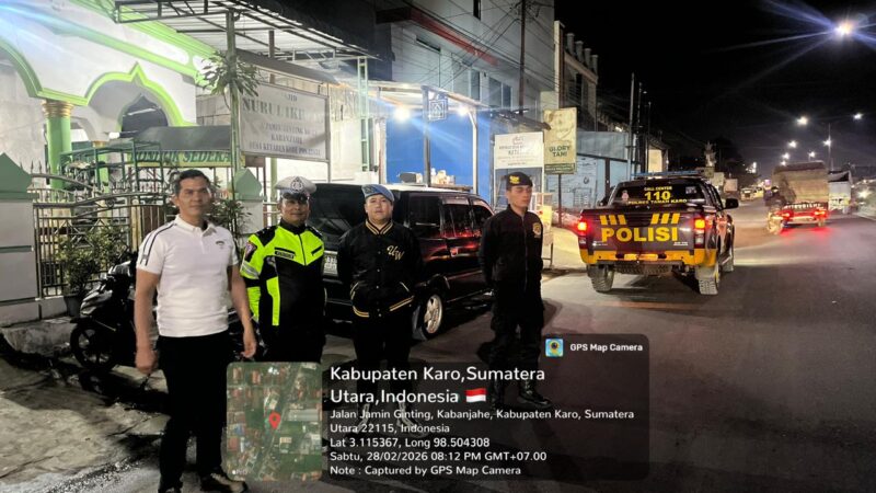 – Personel Polres Tanah Karo melaksanakan patroli sekaligus pengecekan pengamanan (Pam) Sholat Tarawih di sejumlah masjid wilayah Kecamatan Kabanjahe, Kabupaten Karo, Sabtu(28/2/2026) mulai pukul 20.00 WIB hingga selesai.