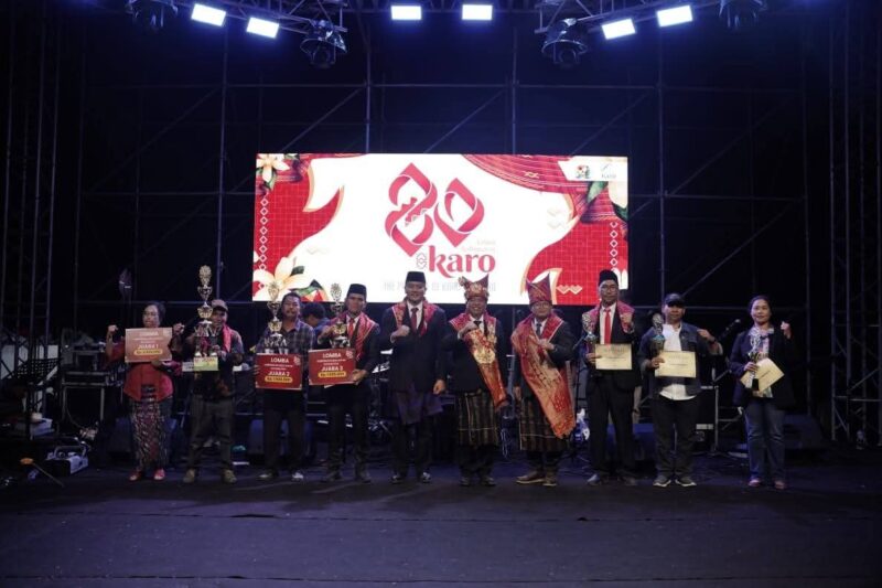 8 Maret 2026 – Bupati Karo, Brigjen Pol (Purn) Dr. dr. Antonius Ginting, S.P.OG., M.Kes, didampingi Wakil Bupati Karo Komando Tarigan,SP dan Sekda Kabupaten Karo Gelora Kurnia Putra, S.STP, MM menyerahkan hadiah kepada pemenang Lomba Kebersihan Desa Antar Kecamatan di Kabupaten Karo Tahun 2026 dalam rangka perayaan Hari Jadi Kabupaten Karo ke-80 di Lapangan Samura Kabanjahe.