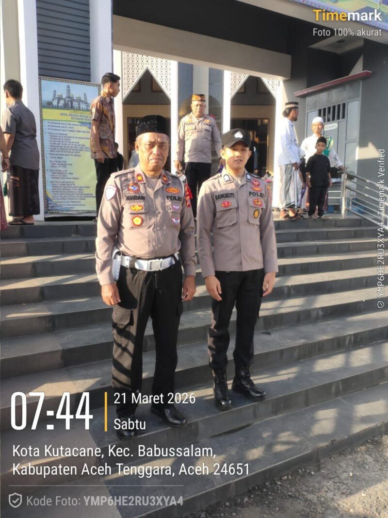 Aceh Tenggara – Dalam rangka memberikan rasa aman dan nyaman kepada masyarakat saat pelaksanaan Hari Raya Idul Fitri 1447 H, jajaran Polres Aceh Tenggara melaksanakan kegiatan pengamanan Sholat Idul Fitri di Masjid Agung At-Taqwa, Kabupaten Aceh Tenggara. Sabtu 21 Maret 2026