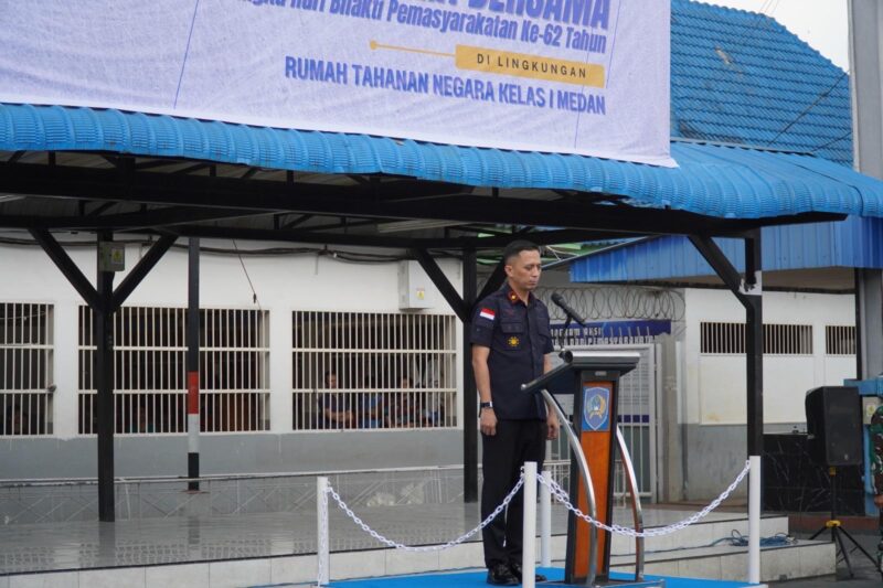 Dalam rangka memperingati Hari Bhakti Pemasyarakatan (HBP) ke-62 Tahun 2026, Rumah Tahanan Negara (Rutan) Kelas I Medan melaksanakan kegiatan apel razia gabungan yang melibatkan unsur internal dan aparat penegak hukum, TNI/Polri sebagai bentuk komitmen dalam menjaga keamanan dan ketertiban. Senin, 6/4/2026.