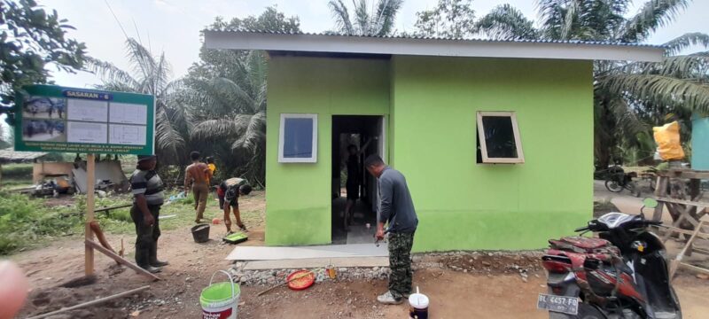 LANGKAT|Personel Satgas TNI Manunggal Membangun Desa (TMMD) ke-128 Kodim 0203/Lkt terus menunjukkan progres pengerjaan di lokasi sasaran fisik. Kali ini, pembangunan Rumah Tidak Layak Huni (RTLH) milik bapak Irwansya terus berlanjut dengan tahap pengecatan rumah,Senin (27/04/2026).